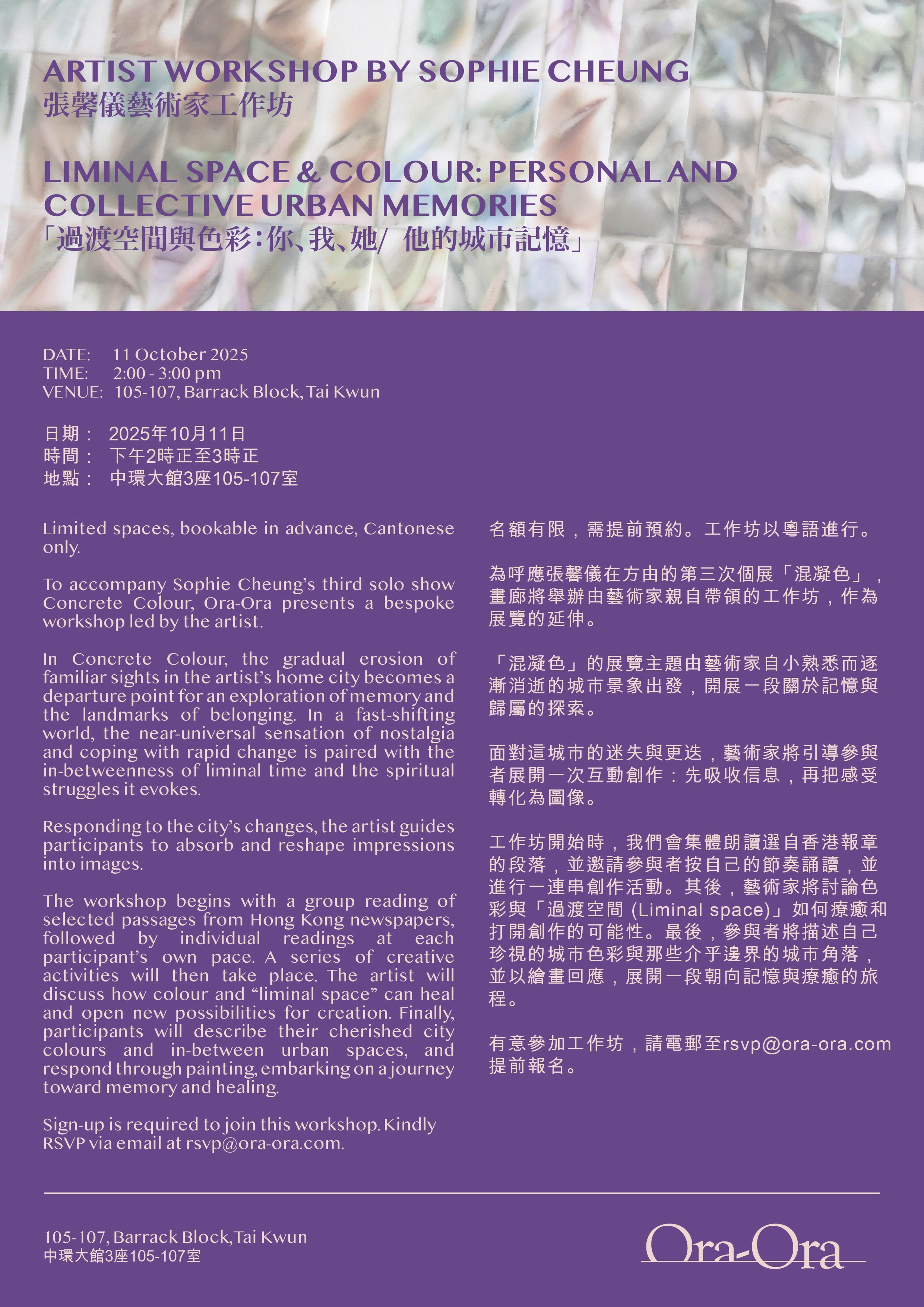 To accompany Sophie Cheung’s third solo show Concrete Colour, Ora-Ora presents a bespoke workshop led by the artist.